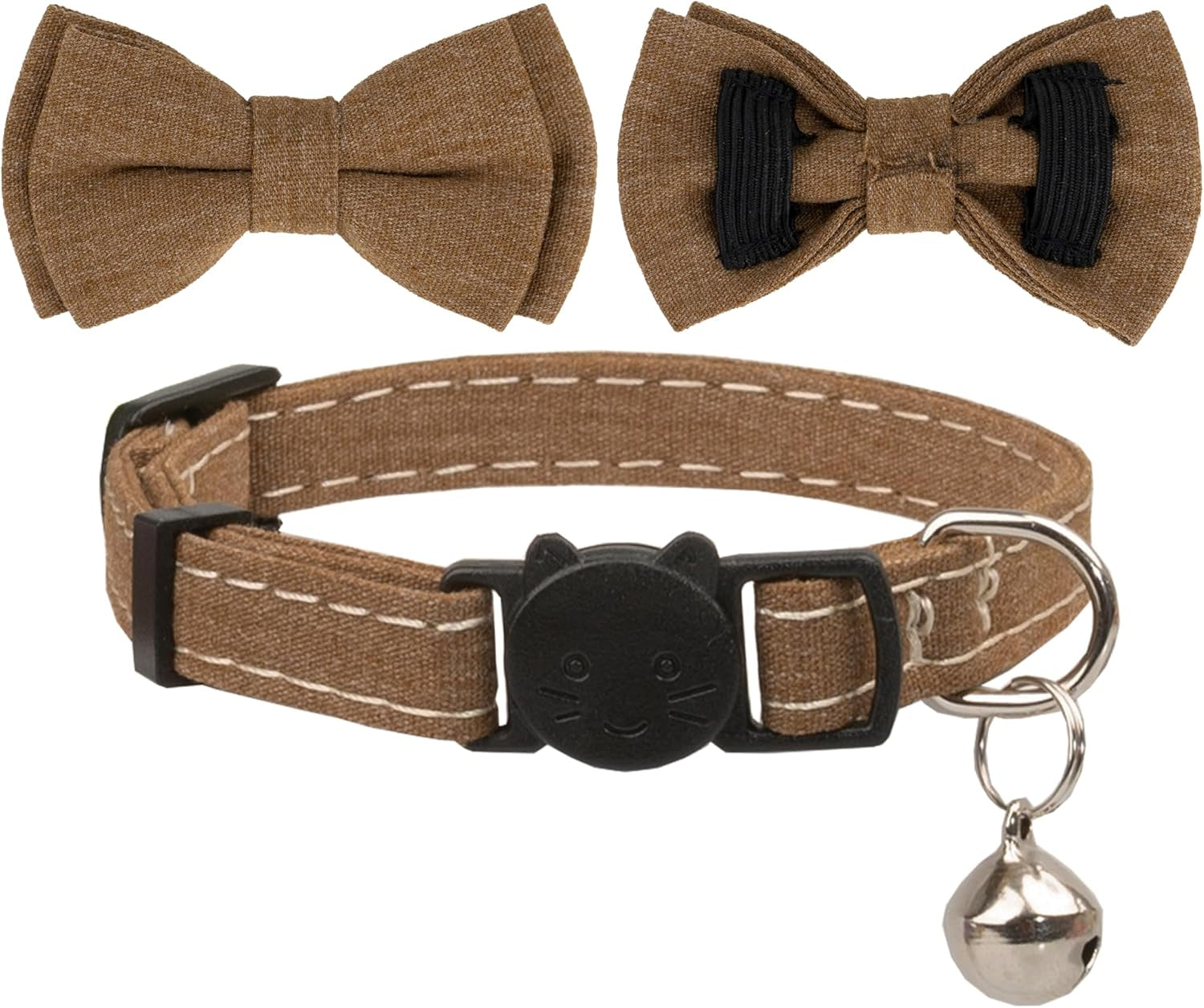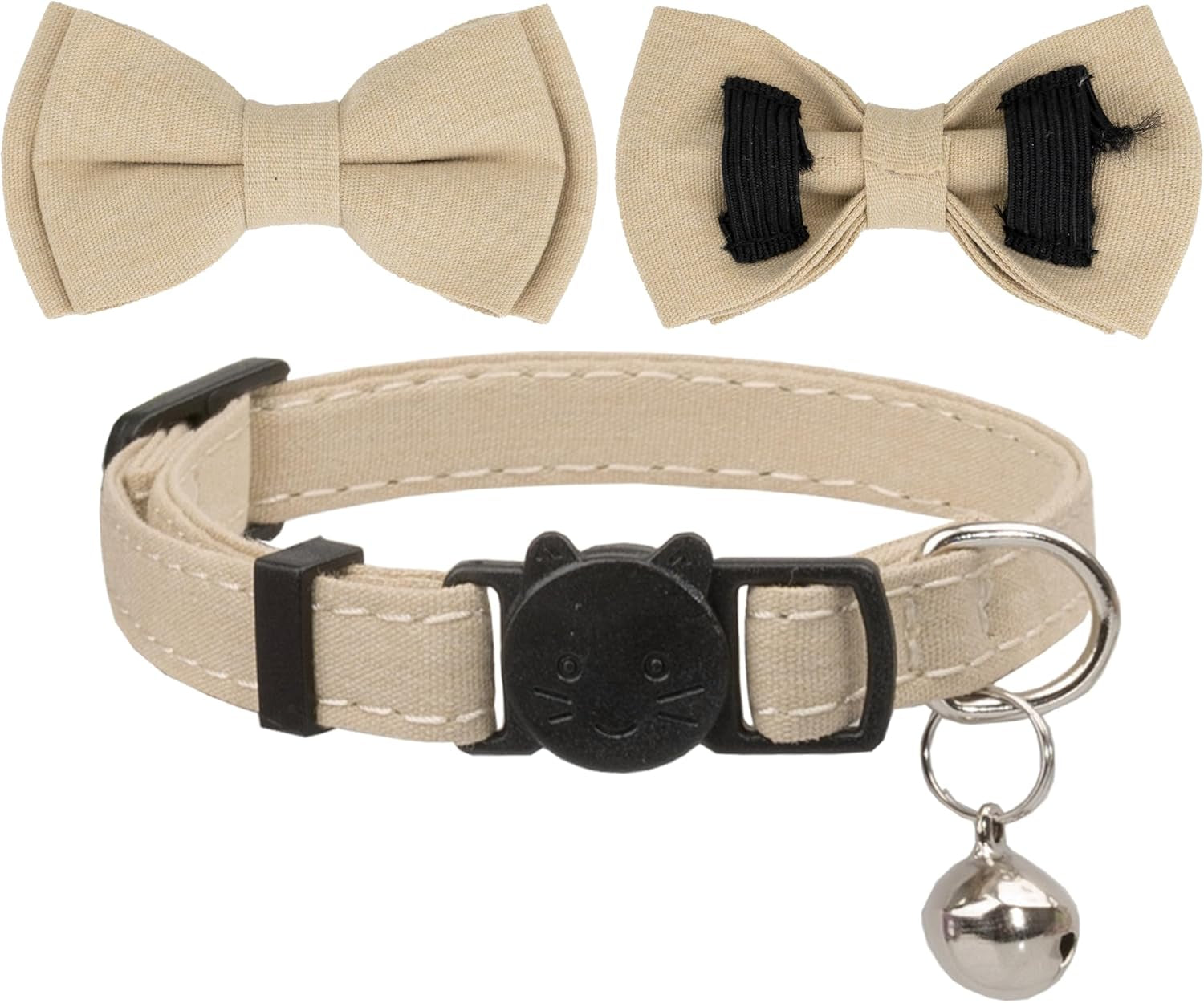 SIZE: Collar: width-0.4 inch, adjustable length-7 to 11 inches. Bowtie: 2.4 inches × 1.2 inches. Customize A fit length to your pet, high amount of adjusting. Please measure the neck girth of your pets before buying. Please adjust the length to the fit size, to reduce the risk of jaw stuck & startle cat