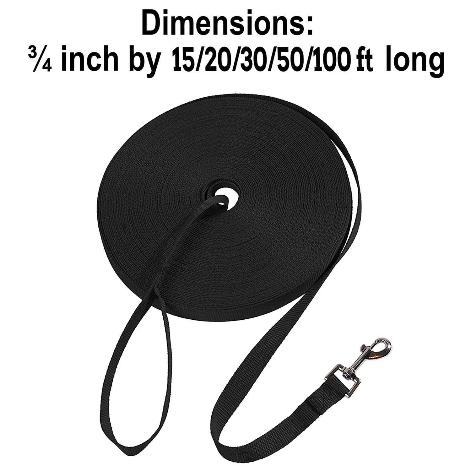 Long Dog Leash Obedience Recall Training Agility Lead - 15Ft 20Ft 30Ft 50Ft 100Ft Training Leash - Great for Training, Play, Camping, or Backyard - Black 15Ft