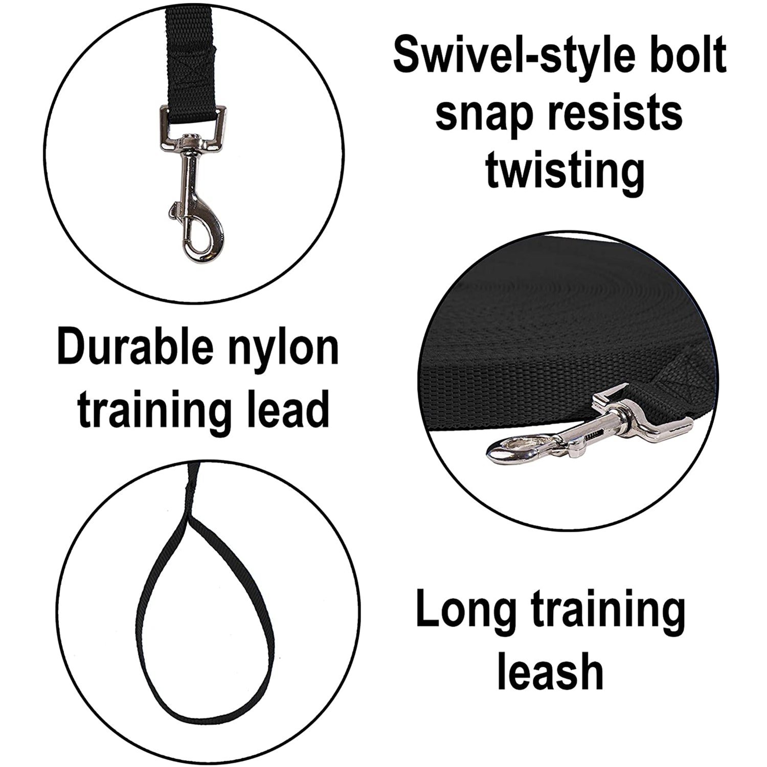 Hi Kiss dog training leash. This durable, long, nylon dog training leash will outlast cotton leashes. All stitching is reinforced and the nickel plated clip swivels to resist twisting. Our long dog leash is great for medium and large dogs. You'll love using it as a backyard dog leash, for off leash dog training, and more. Hi Kiss nylon training leash provide extra strength for controlling large dogs. This extra long training lead is designed for distance training. Handle the dogs with this sturdy leads.