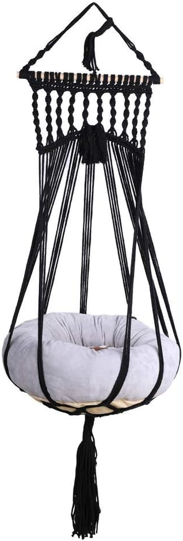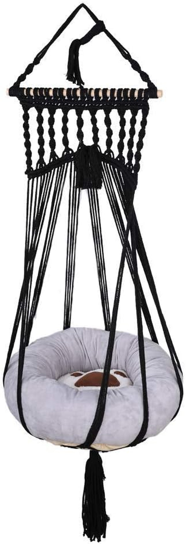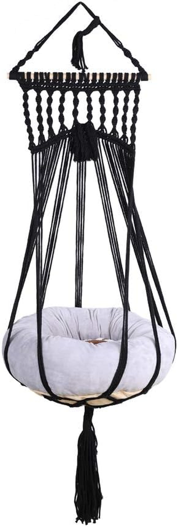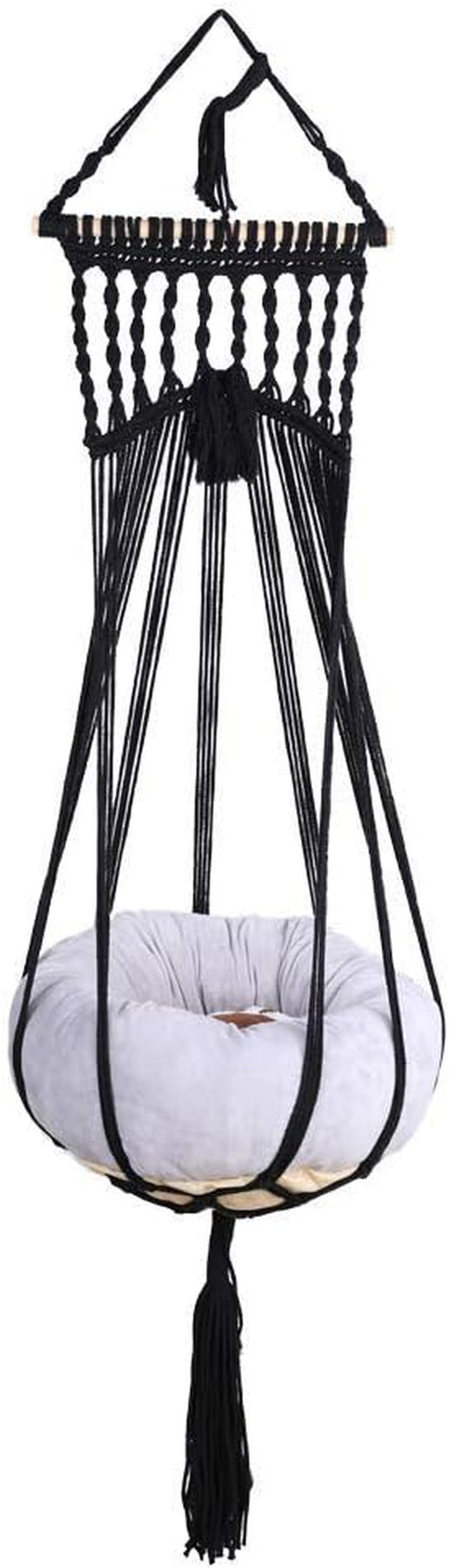 Macrame hammock for the cat, hanging, made of cotton string. Pillow is included The hammock can be hung as you like. for example : a durable curtain rod in the window, bedroom wall etc. Size: 39 inches length , 13 inches width