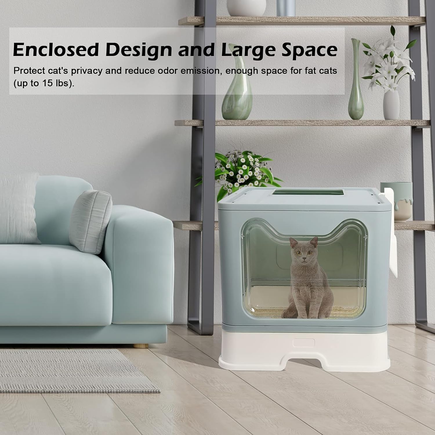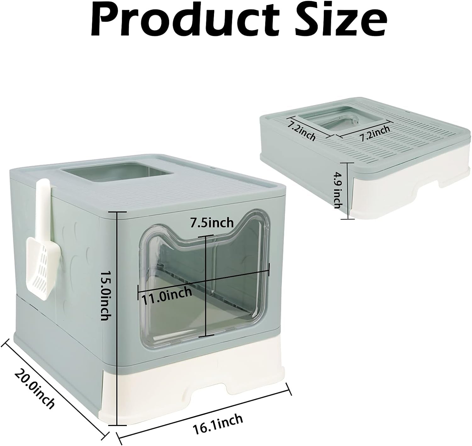 Large size (16.1"x20"x15") cat litter box, enough space for cats to move inside, more comfortable to use, even for fat cats.