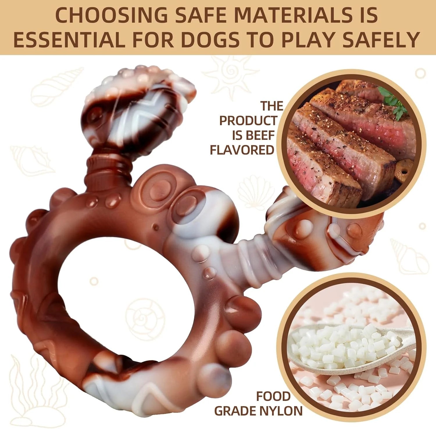 Attrative Beef Favlor Dog Toys:Compared to other aggressive chewers dog toys for medium dogs, our tough chew toys for dogs are more likely to attract dogs' attention. These big dog toys for large dogs and extra large dog toys for aggressive chewers can give your dog the most original taste experience as we've added actual beef flavor. The beef flavor outdoor dog toys for large dogs will make dogs chew longer and enjoy endless fun and pleasure in the compare with other odorless dog toys