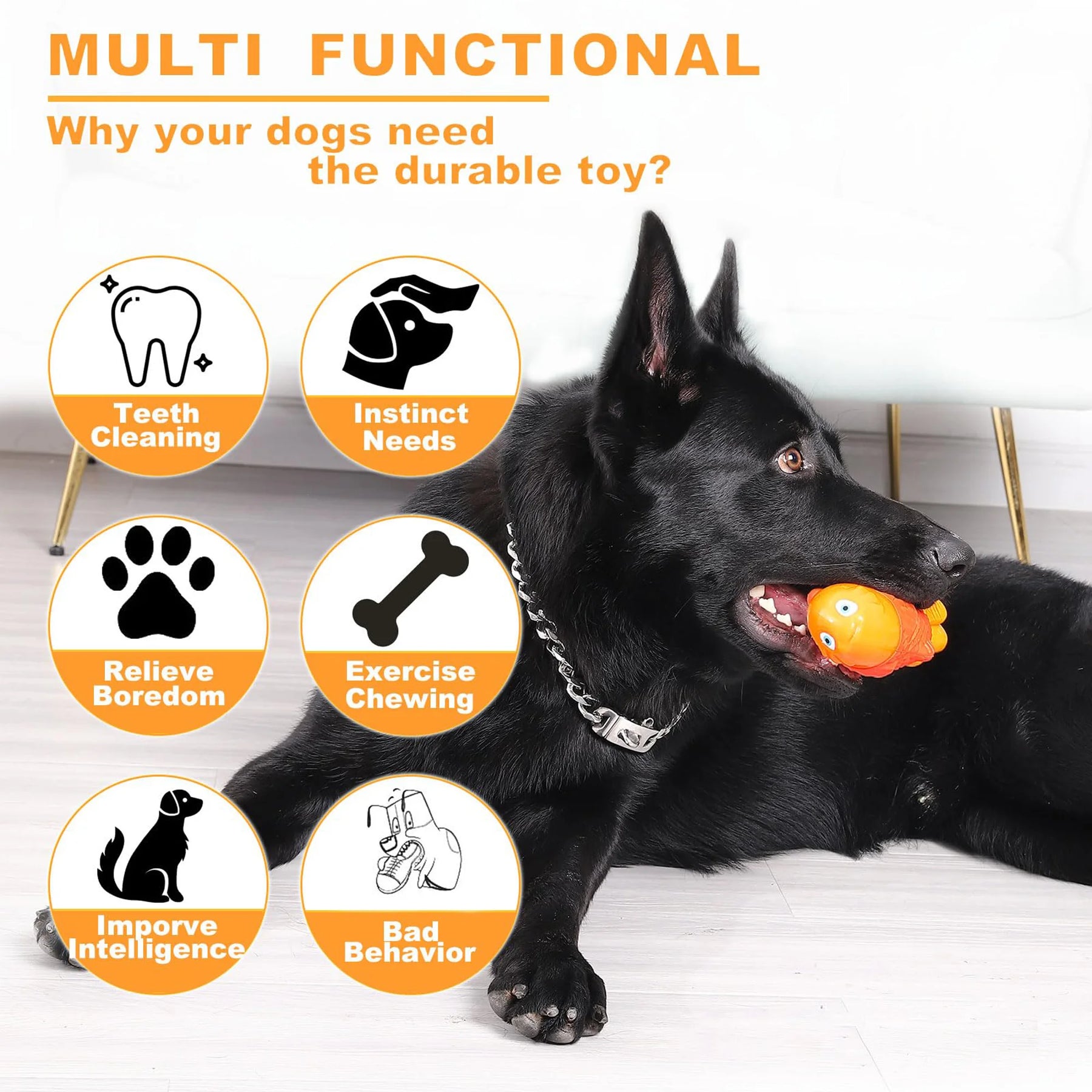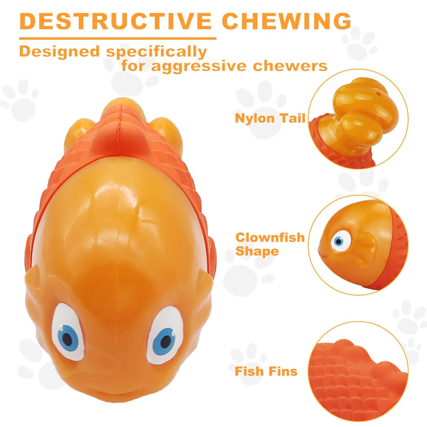 Fun Squeaky Dog Toys:With built-in sound design, our dog squeaky toys for aggressive chewers and aggressive dog chew toys for large dogs can grabs dogs attention and stimulate their interest easily, which will help extend chewing time and consume their energy. Moreover, the vivid orange color and clownfish-shaped of the dog squeak toys and strong dog toys for aggressive chewers make it easy for you dogs to recognize, make the dogs more excited and provide more fun to relieve boredom for hours