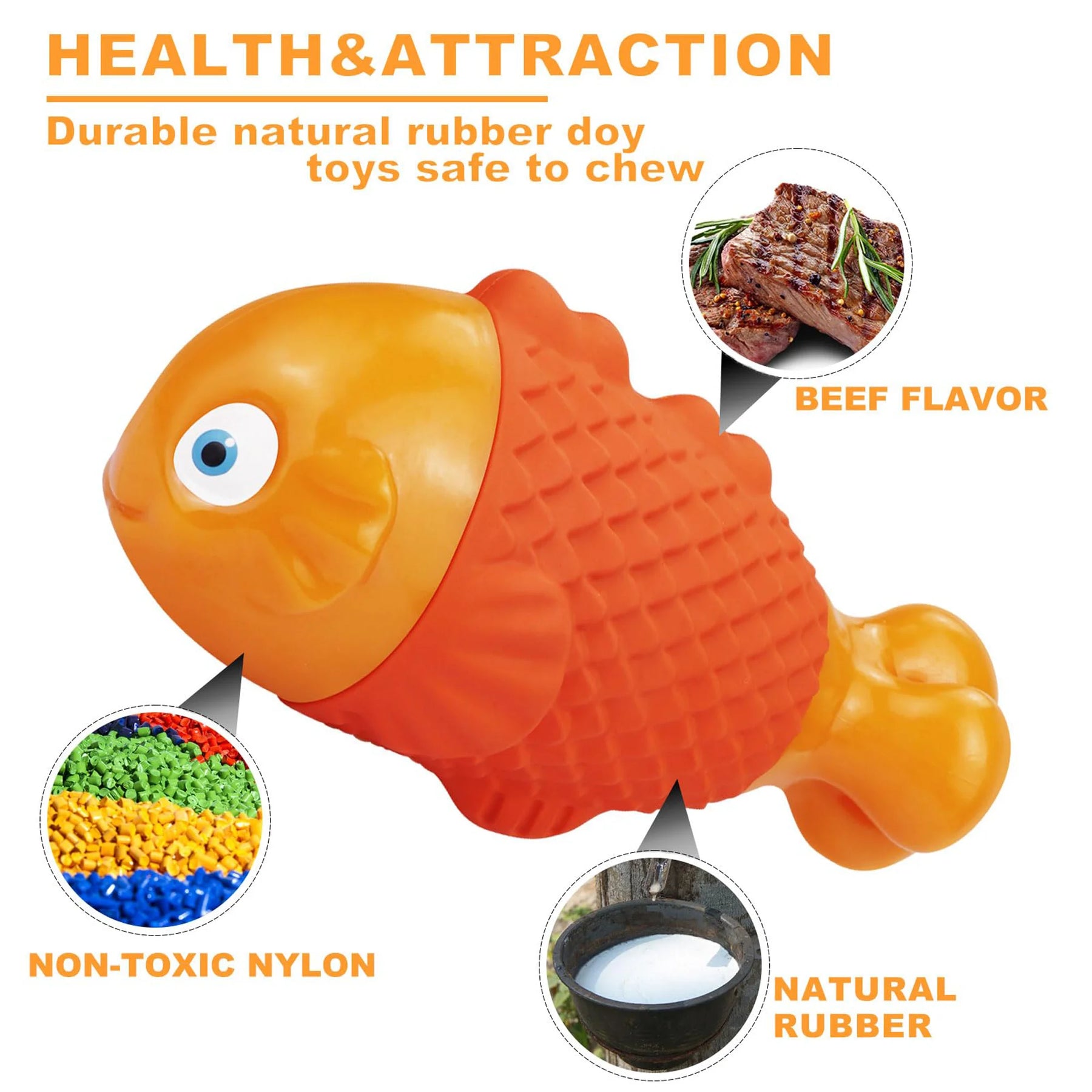 Tough Nylon&Rubber:Made of non-toxic natural rubber and hard nylon, the rubber squeaky dog toys for large dogs and durable dog toys for aggressive chewers can bring dogs two different chewing experiences. The head and tail of the indestructible dog toys for aggressive chewers and dog toys indestructible are sturdy and resistant to bite, the body of the rubber dog toy for aggressive chewers and chew proof dog toy with fish scale design can gently massage gums and relieve teething pain