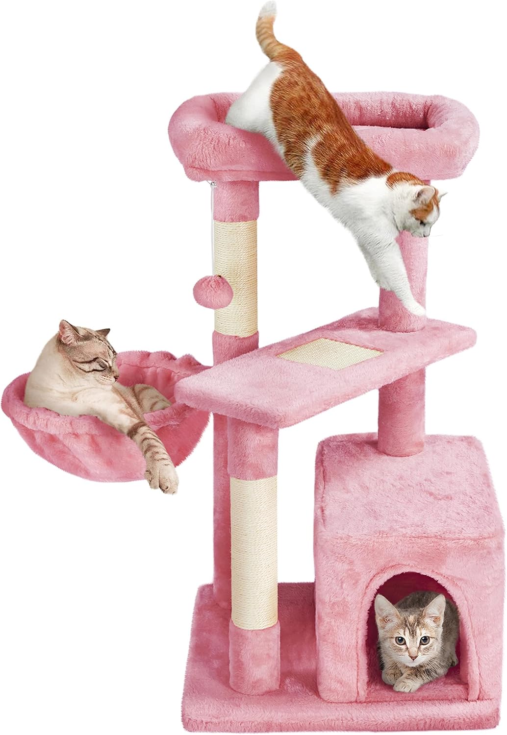 Cat Tree, 34In Cat Tower, Multi-Level Cat Condo with Extra Scratch Boards and Sisal Posts as Kitty Activity Center Pet Stand Tree for Indoor Kittens