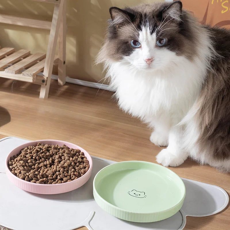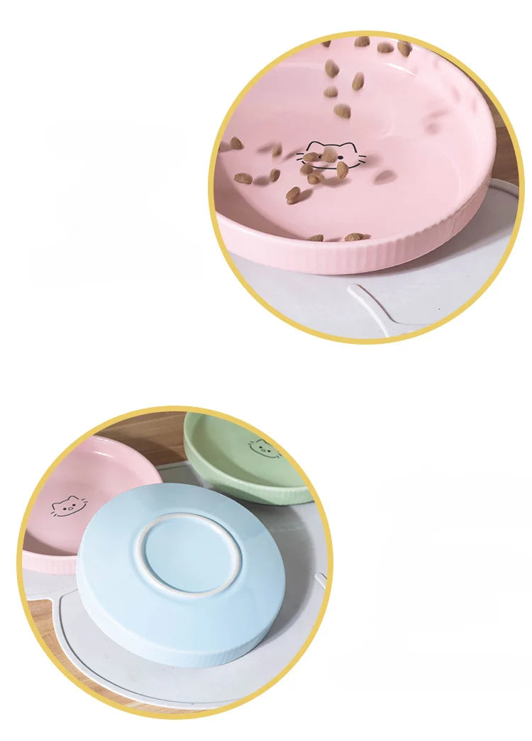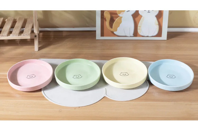 Ceramic Tableware for Cats Plates Feeders Cartoon Puppy Pet Food Bowl Shallow Mouth
